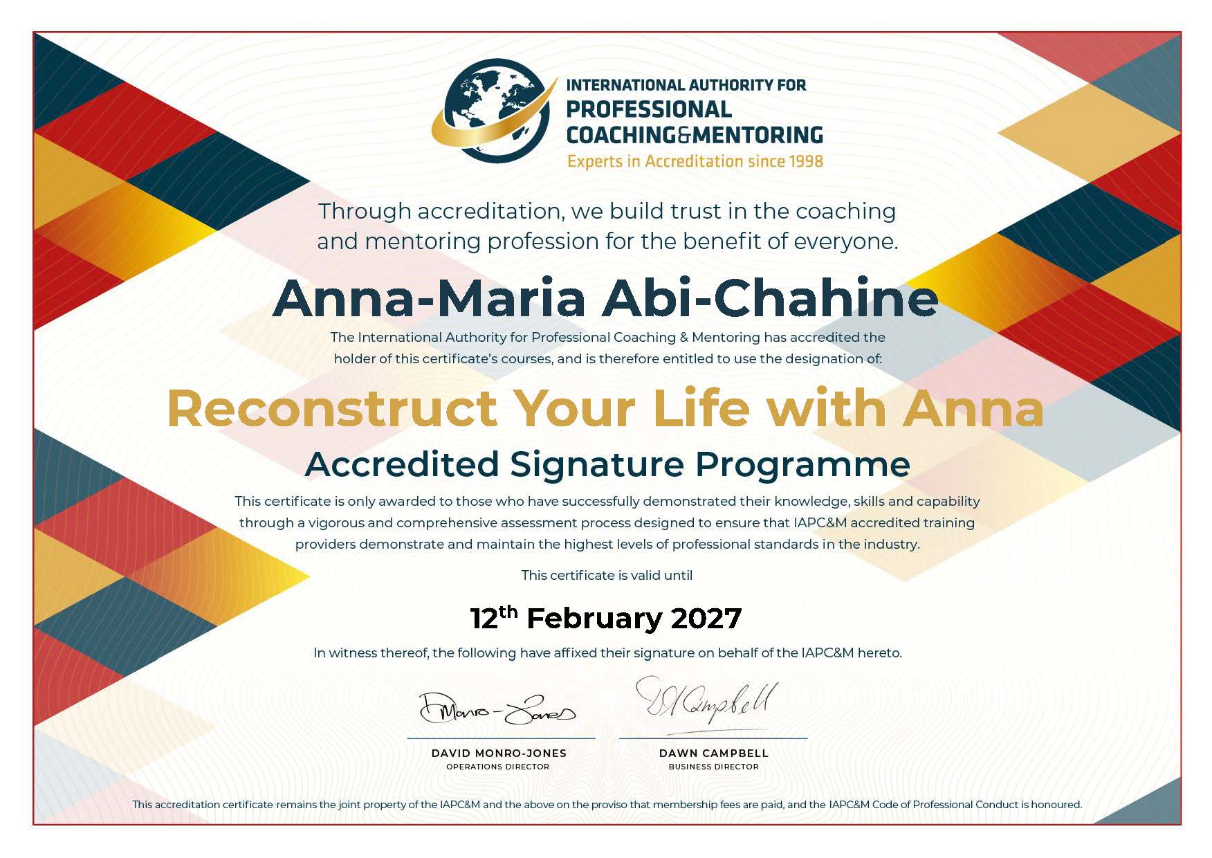 I did 18 sessions with Anna Maria and she is always beside me regardless all she had neve leave me behind my life was totally a mess before I meet her she changes everything's I get to the point I see life differently even the circumstance didn't change she change Ur perspective in life and transform it into wisdom with some touch of harmony and smartness she is really a real leader and professional life coach.